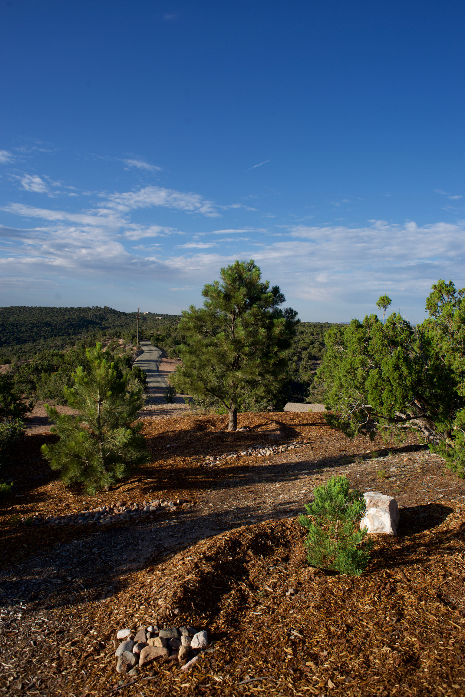 Fire-defensible space is key in our semi-arid climate. These projects take into consideration wildlife habitat, privacy needs, and aesthetics. Projects may also include soil stabilization, erosion control, and passive water harvesting. A 19-acre Seeds of Wisdom project in the wildland-urban interface involved collaboration with the New Mexico Forestry Division and received an AAA rating from the insurance agent!